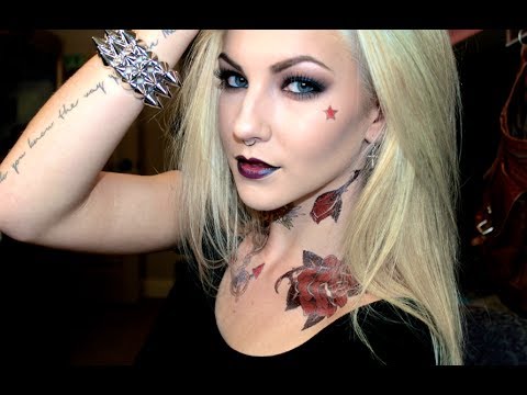 From this I have realised that it would be a good idea to get some temporary tattoos as this is what stereo typically a female rocker chick would have. I also could invest in some good dark make up to get a good affect when taking photographs. Finally to find a suitable model and find appropriate clothing for them to wear. In both of these videos, studded clothing is seeming the mode and purple/very deep red lipstick is something which would be better suited to use.